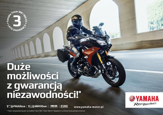 Program obejmuje cztery najpopularniejsze motocykle Yamahy napędzane słynnym, trzycylindrowym silnikiem CP3 o pojemności 847cm3 i mocy 115 KM. Należą do nich: hyper naked MT-09 i jego usportowiona wersja MT-09 SP oraz sportowo-turystyczne Tracer 900 i Tracer 900 GT. Każdy, kto do końca maja br. zdecyduje się na zakup jednego z wymienionych motocykli, otrzyma dodatkowy rok gwarancji w cenie. Szczegóły promocji dostępne w regulaminie.