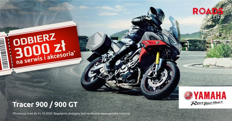 - przy zakupie Tracera 900 lub 900 GT otrzymasz aż 2500 zł na akcesoria Yamahy i pierwszy przegląd za 1 zł.